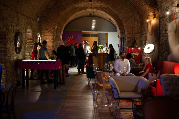 The Club is a privately-owned space in Palac Austria at Štefánikova 25, Prague 5. Its 331m² can accommodate up to 130 guests. The Club is completely furnished with a bar, refrigerators, coffee machine, water dispenser, cozy sitting areas, foosball, table tennis, a baby grand piano, A/C, and plenty of room to move comfortably (or even get up and dance!). There is also professional sound equipment and a 3.4x2.4m Panasonic projection screen—perfect for presentations, videos, or karaoke.